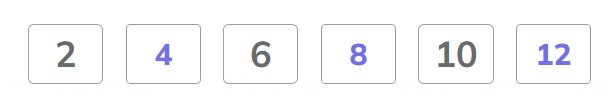 Complete the missing even numbers in the pattern. An even numbers can be split into two equal parts.