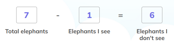 There are 7 elephants in all. You can only see one. How many elephants don't you see?