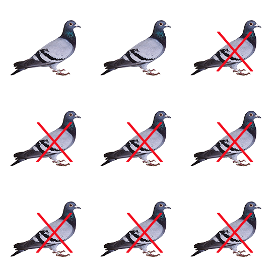 Start with 9 pigeons. If 7 pigeons are taken away, how many pigeons are left? Write the answer in the box.