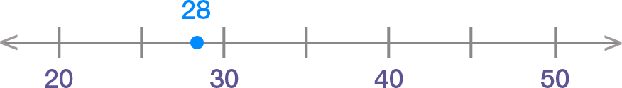 Round 28 to nearest tens place? Use the number line to complete the sentence.