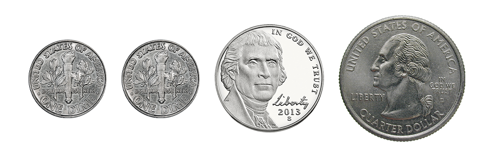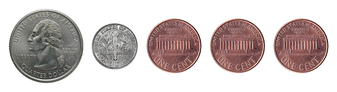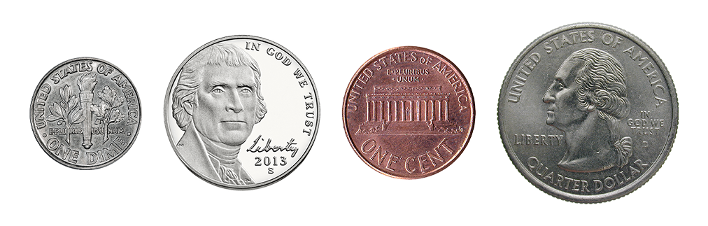 You pay $10.00 to buy a map of the United States costing $9.59. Which change will you receive?