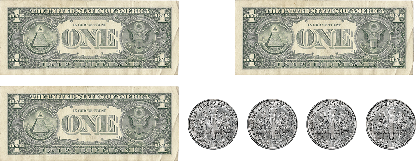 A dictionary costs $3.36. If you have the following money, is it enough to buy the dictionary?