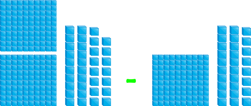 Subtract the following using place value blocks.