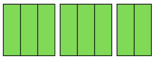 Explanation: We have 8 units. We want to divide them into groups of 3. The division gives us 2 full groups of 3, with 2 leftover objects.