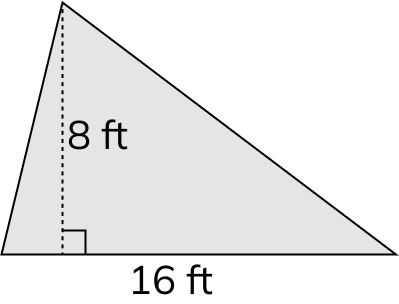 Find the area of triangle, where A = 1 / 2 × b × h.