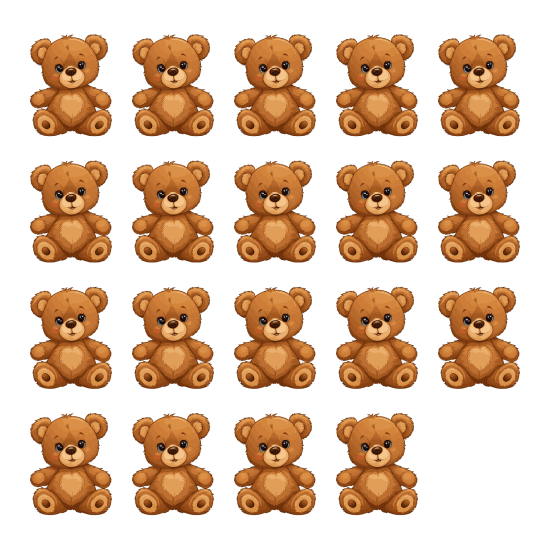 Which group has nineteen teddy bears?